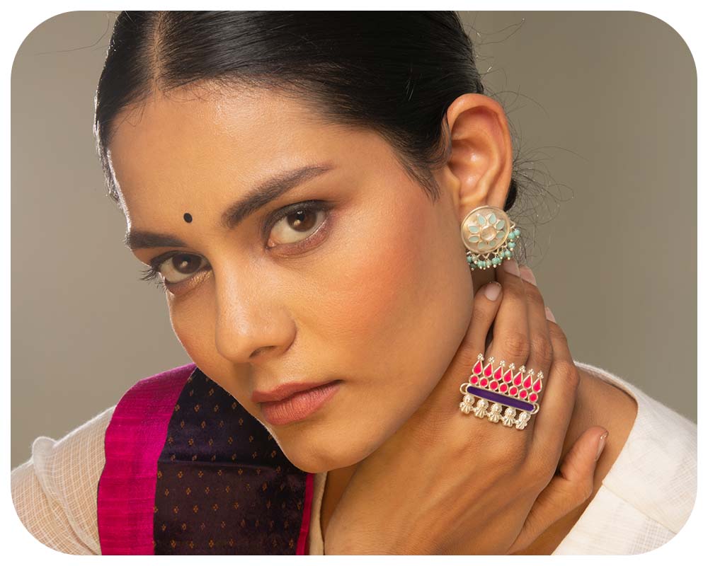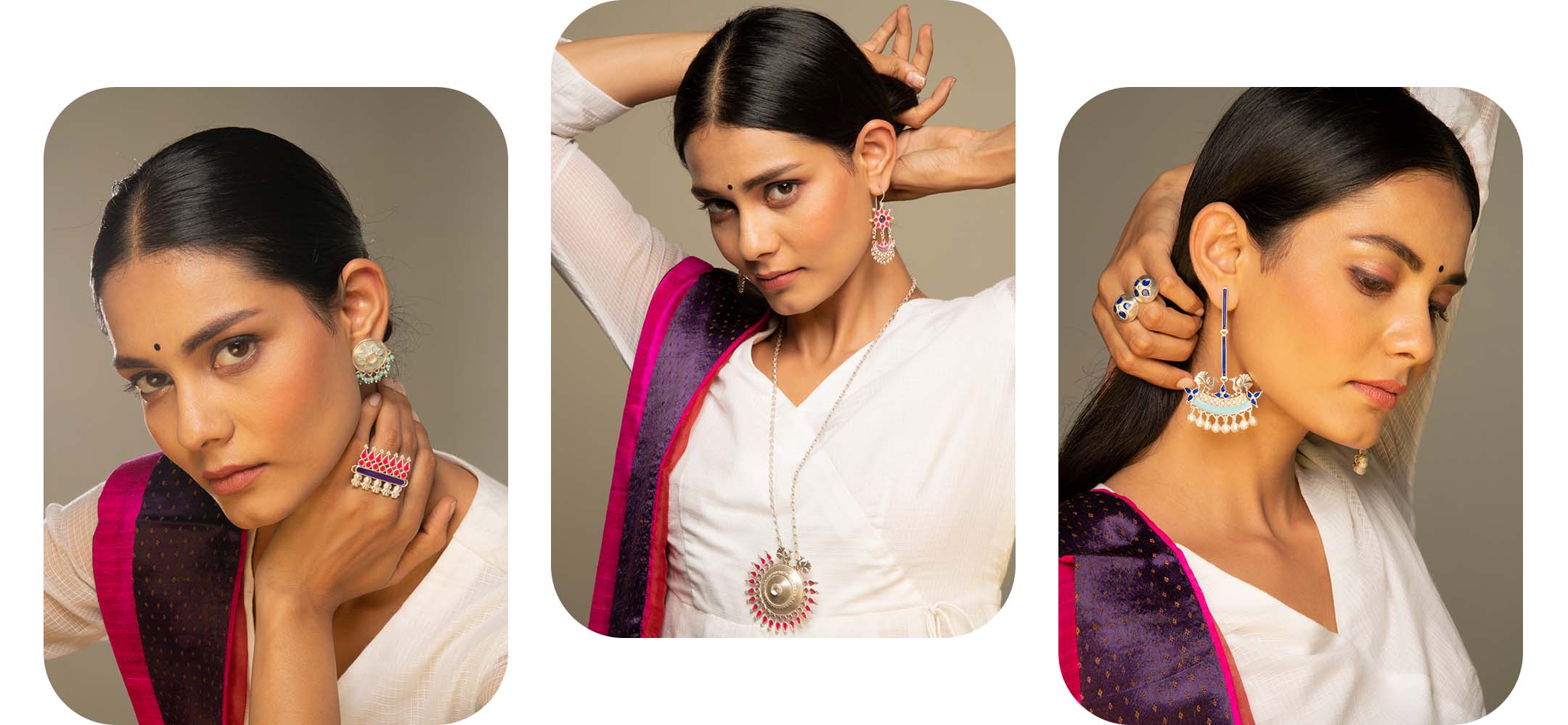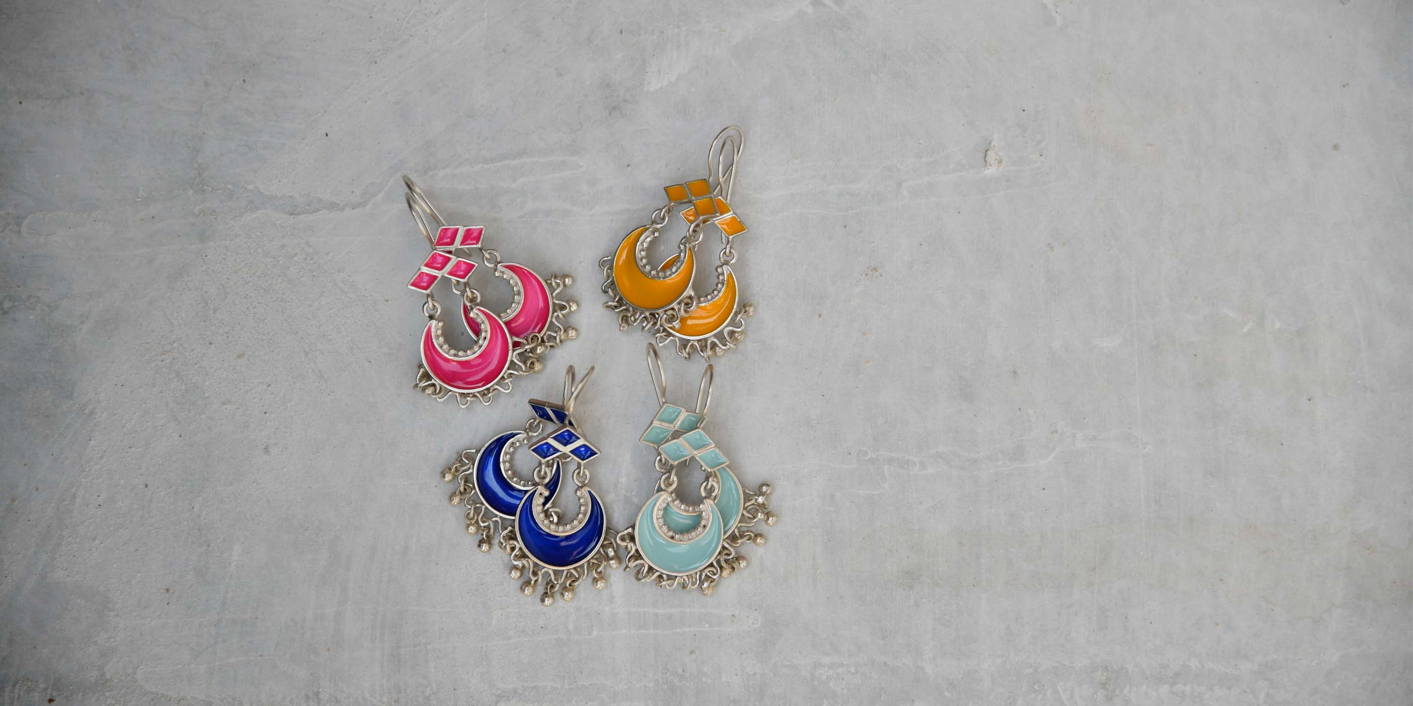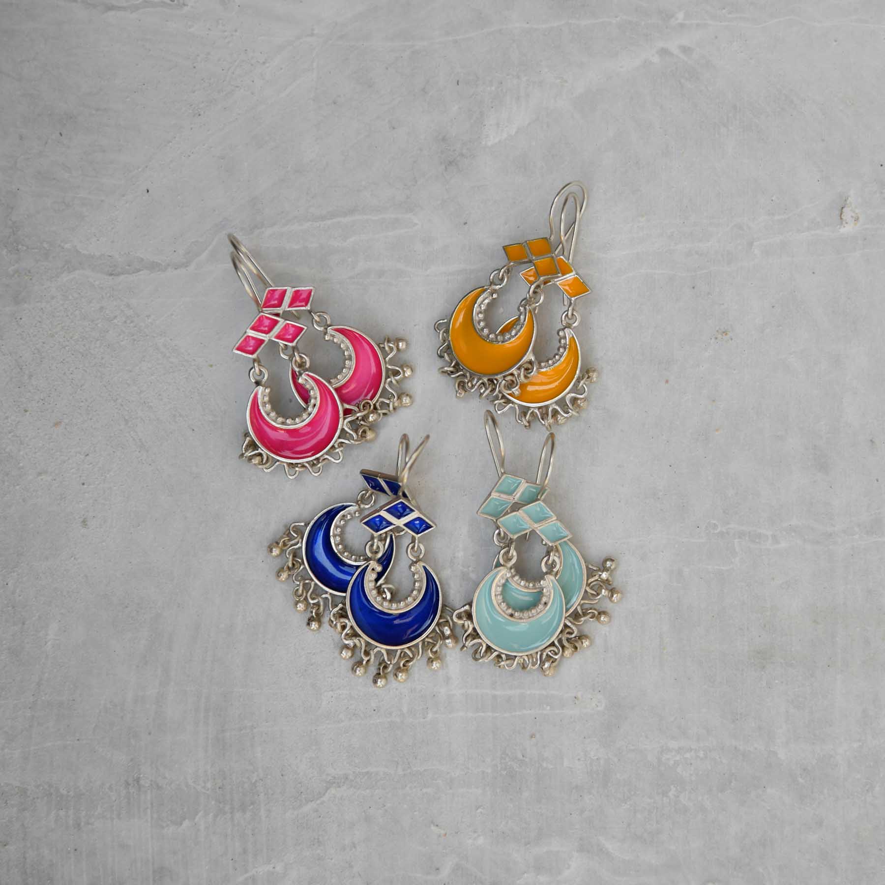 The rang collection is a line of enamel jewelery featuring silver jewlery embellished with colourful enamel. Enamel jewelry has been around for thousands of years and can be found in many cultures around the world. This collection offers a colorful take on traditional silver jewelry, and is a great option for those who are looking for something stylish yet classic.
