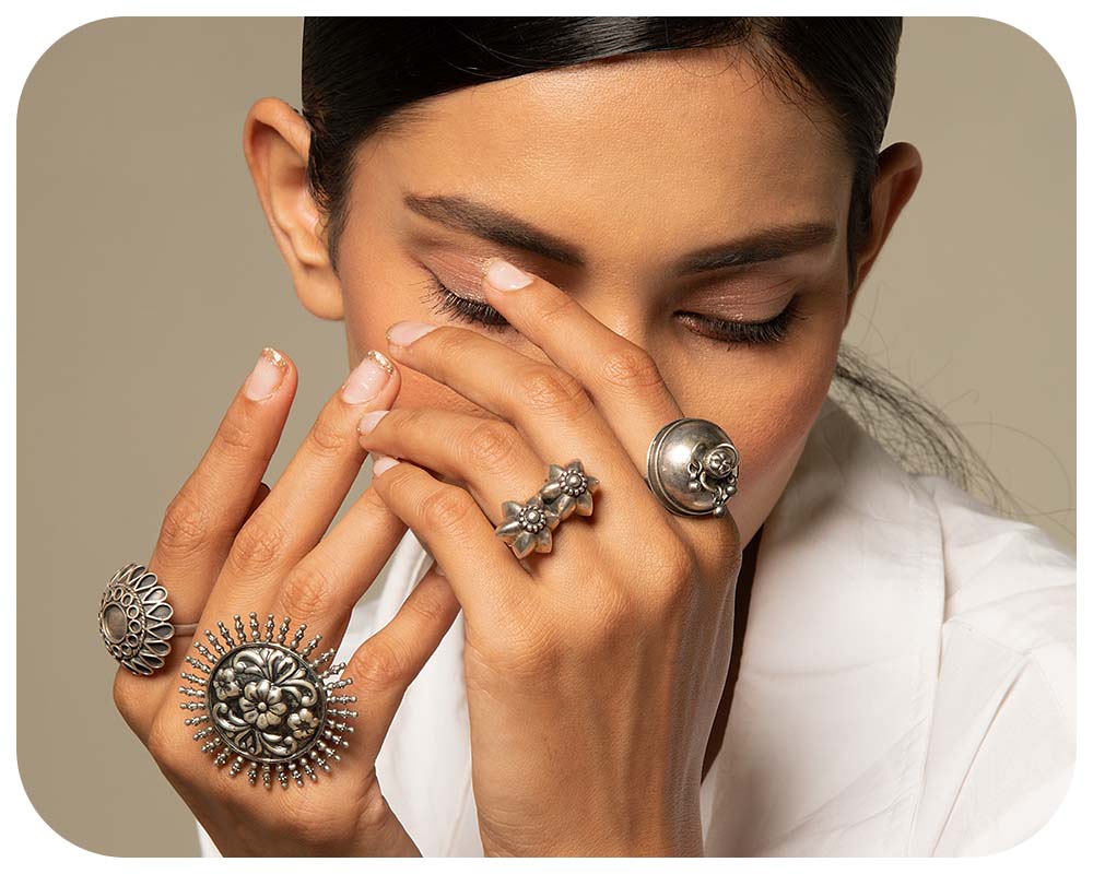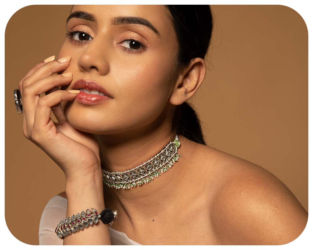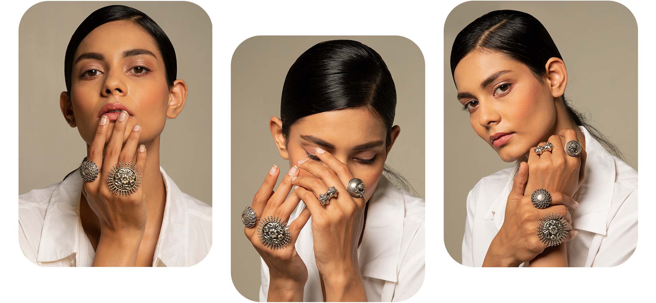 The inaayat collection is the coming together of new and the old. Silver in its purest form, that has been allowed to age naturally, elevates contemporary cuts of natural gemstones to bring to you a range of bespoke pieces. At the core of this collection lies Devi's ethos of drawing from traditions to create something fitting for the times.